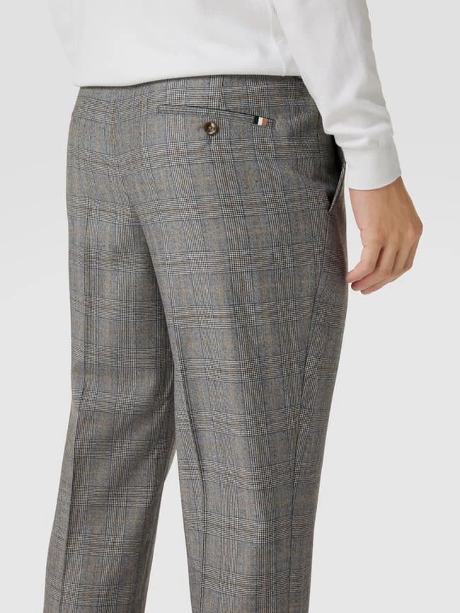 Die Anzughose von BOSS ist aus reiner Schurwolle gefertigt und gerade geschnitten. Sie zeigt sich mit Allover-Muster, Paspeltaschen sowie Gürtelschlaufen.