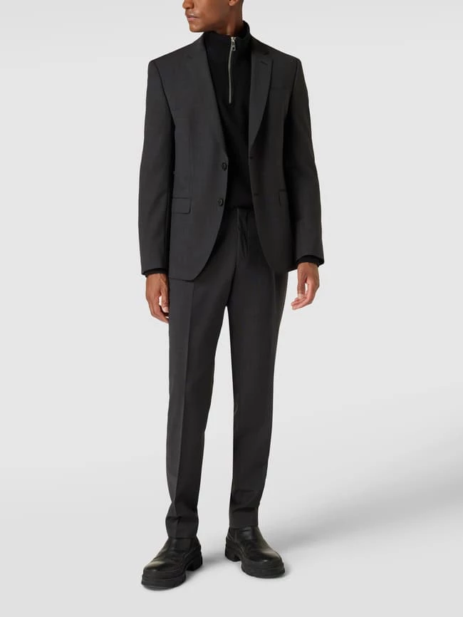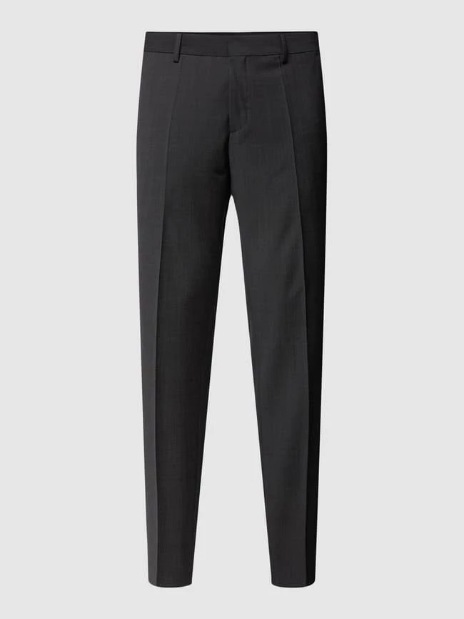 Die Hose von BOSS ist aus einem Material-Mix mit Woll-Anteil gefertigt und gerade geschnitten. Sie kommt mit Bügelfalten, Gürtelschlaufen sowie Eingrifftaschen.