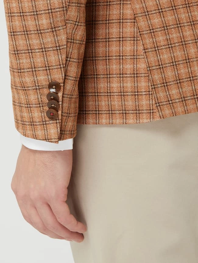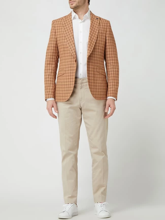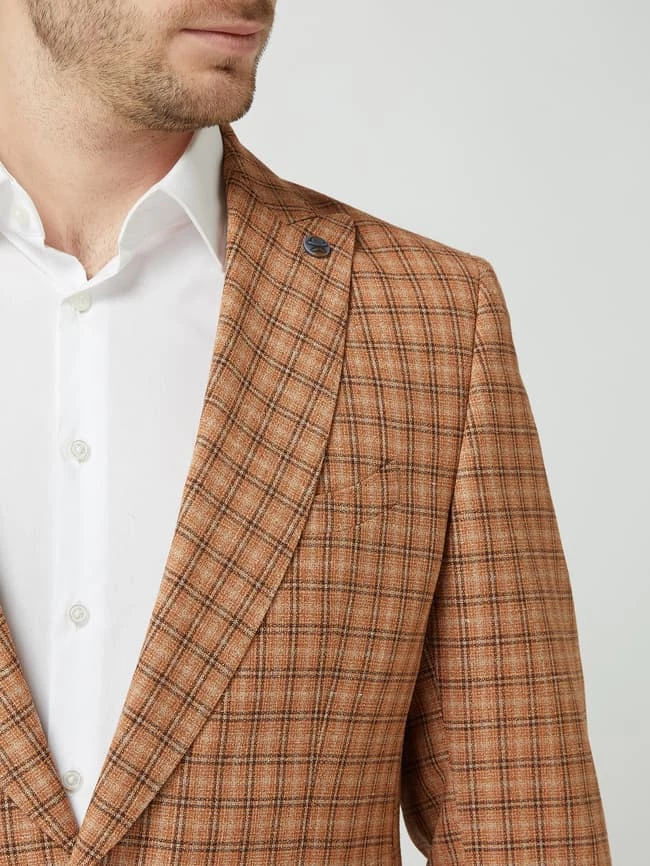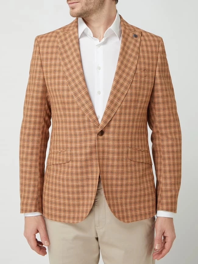 Das Sakko von CG Club of Gents ist aus einer Schurwollmischung mit Seide- und Flachs-Anteil gefertigt. Es kommt mit Karomuster, 1-Knopf-Verschluss und paspelierten Pattentaschen.