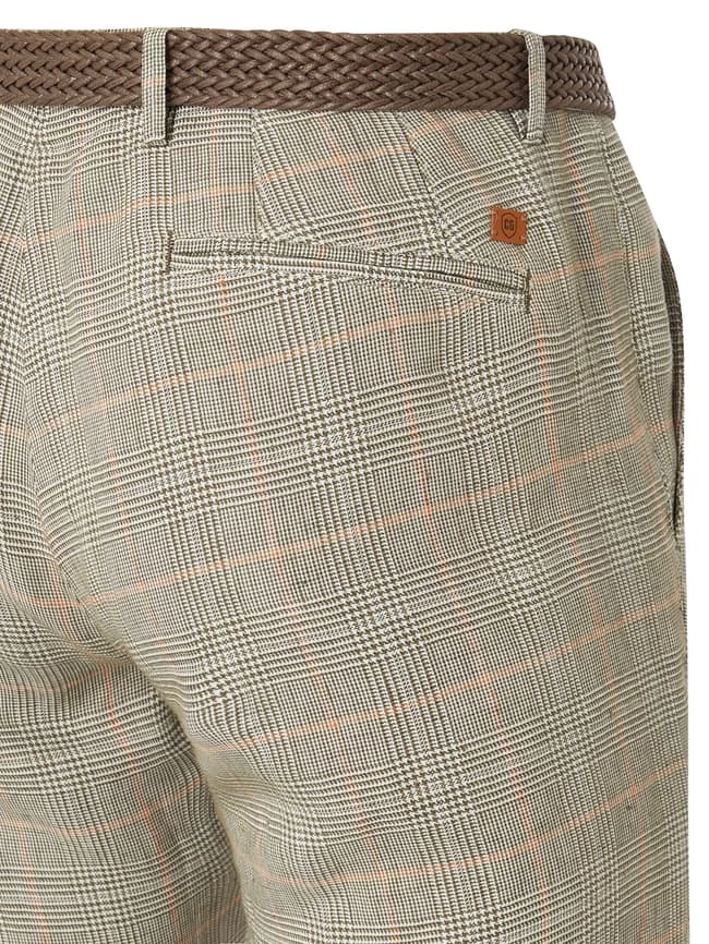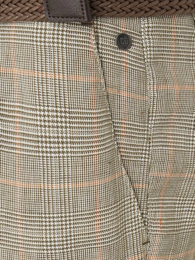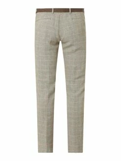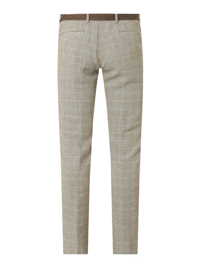 Die Anzughose von CG Club of Gents ist aus einer Leinenmischung gefertigt und schmal geschnitten. Sie kommt mit Glencheck, Gürtel und Eingrifftaschen.