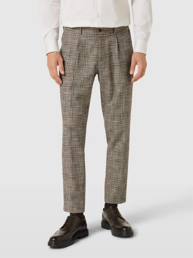 Die Anzughose von CG Club of Gents ist aus einem Viskose-Mix gefertigt und im Regular Fit gehalten. Sie zeigt sich mit Tartan-Karo, Bund- und Bügelfalten.