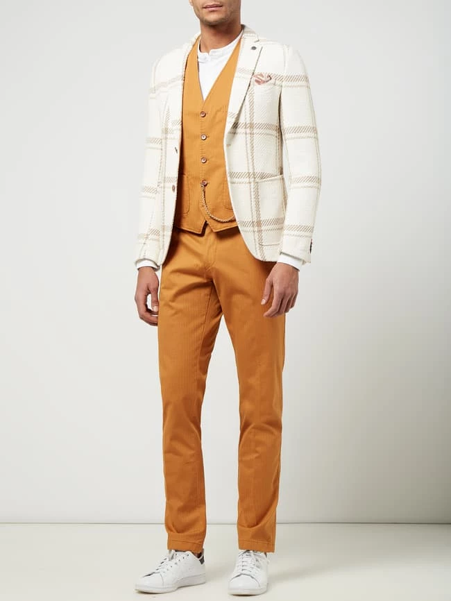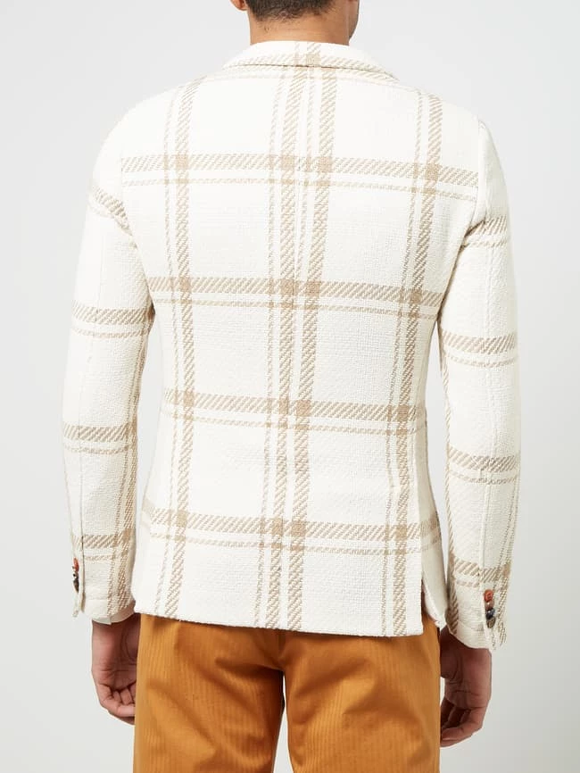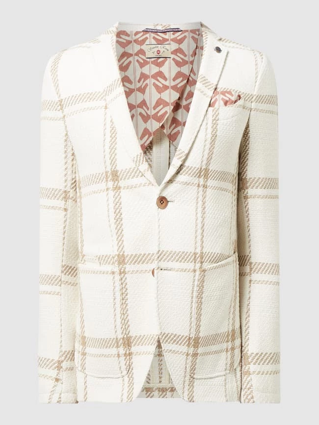 Das 2-Knopf-Sakko von CG Club of Gents ist aus einer leichten Baumwollmischung gefertigt. Es zeigt sich im Slim Fit mit Gitterkaro, fallendem Revers und Billet-Tasche. Die Kollektion ‚Savile Row‘ steht für eine Kombination aus italienischer Raffinesse mit der Wertigkeit, Langlebigkeit und Maskulinität englischer Machart.
