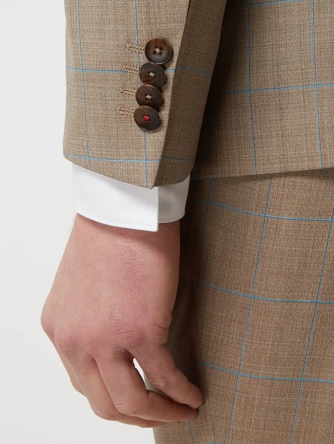 Das Sakko von CG Club of Gents ist aus reiner Schurwolle gefertigt und schmal geschnitten. Es zeigt sich mit Fensterkaro, steigendem Revers und Kissing Buttons. Die Kollektion ‘Savile Row’ steht für eine Kombination aus italienischer Raffinesse mit der Wertigkeit, Langlebigkeit und Maskulinität englischer Machart.