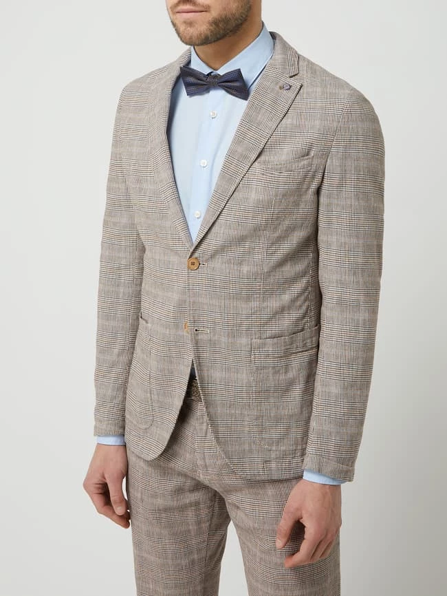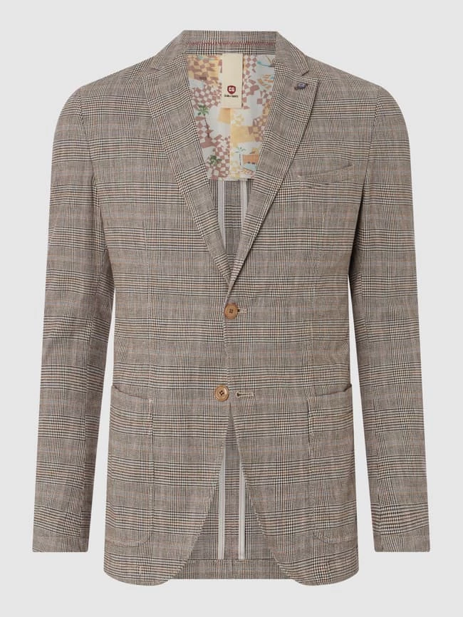 Das Sakko von CG Club of Gents ist aus einer Baumwollmischung mit Leinen- und Stretch-Anteil gefertigt. Es kommt im Slim Fit mit Glencheck-Muster, 2-Knopf-Leiste und aufgesetzten Taschen.