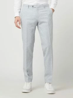 Die Anzughose von CG Club of Gents ist aus einem Baumwoll-Leinen-Mix gefertigt. Sie kommt im Slim Fit mit Pepita-Dessin, französischen Eingrifftaschen und Bügelfalten.