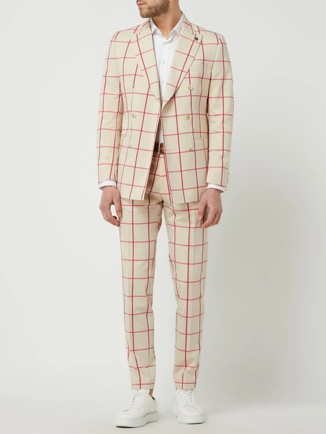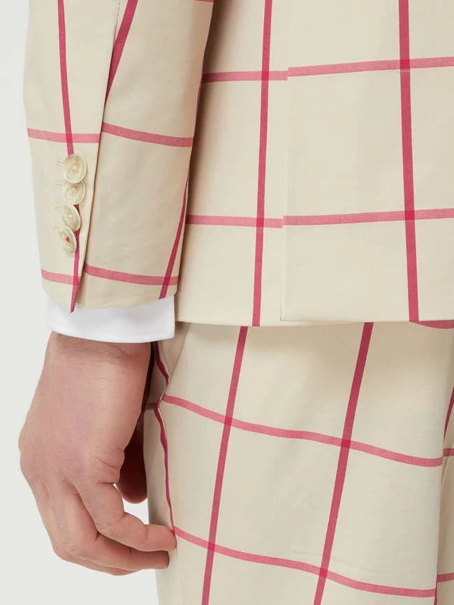 Das Sakko von CG Club of Gents ist aus einer Baumwollmischung mit Stretch-Anteil gefertigt und im Slim Fit gehalten. Es zeigt sich mit Gitterkaro, steigendem Revers und 2-reihiger Knopfleiste. Die Kollektion ‘Savile Row’ ist in Anlehnung an die berühmte, gleichnamige Gasse im Londoner Stadtteil Mayfair entstanden, die für ihre Herrenschneiderkunst bekannt ist.