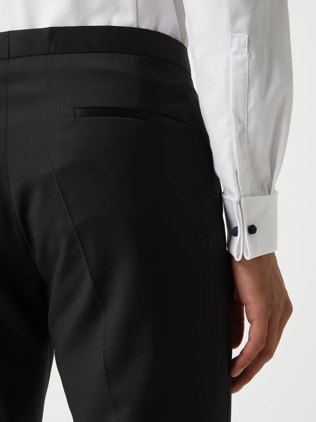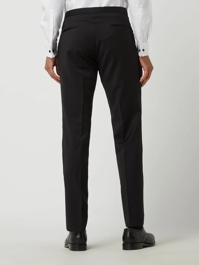 Die Smokinghose von CG Club of Gents ist aus reiner Schurwolle gefertigt und im Slim Fit gehalten. Sie zeigt sich mit Reißverschluss, Eingrifftaschen und Kontraststreifen aus Satin.
