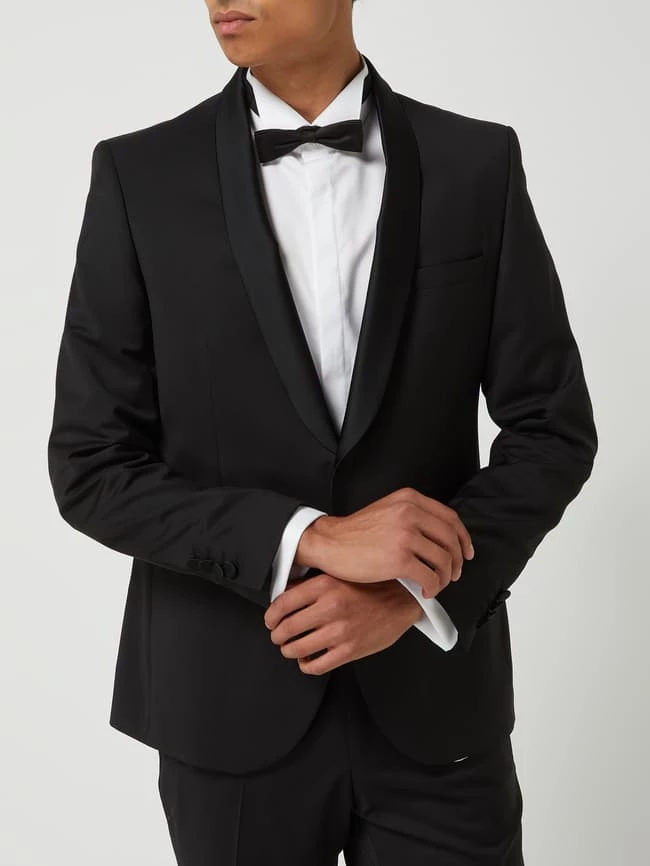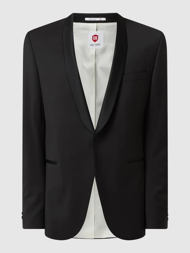 Die Smokingjacke von CG Club of Gents ist aus reiner Schurwolle gefertigt. Sie kommt im Slim Fit mit Schalkragen, 1-Knopf-Verschluss und Paspeltaschen.