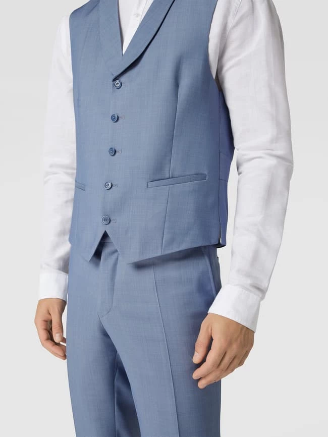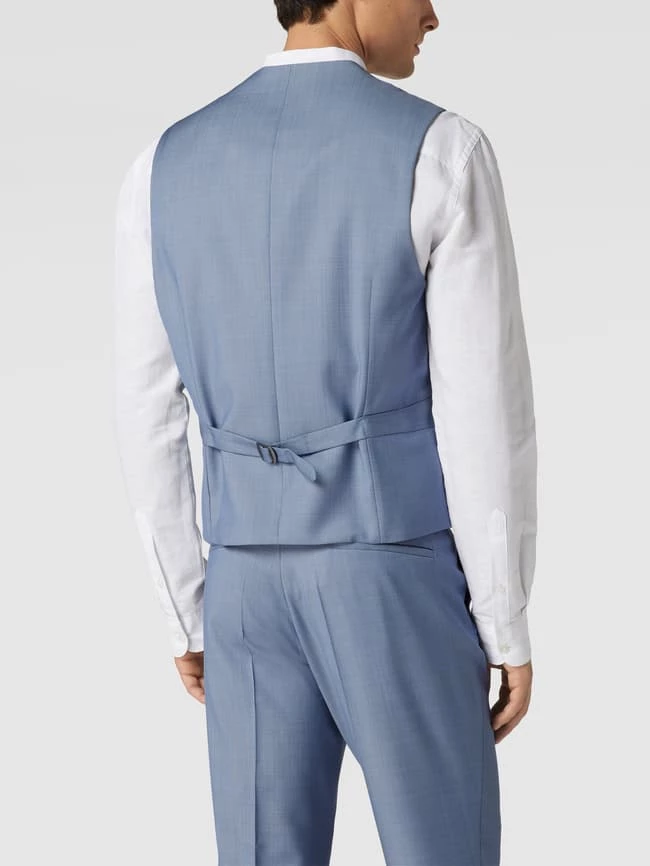 Die Weste von CG Club of Gents ist aus einem Schurwoll-Elasthan-Mix gefertigt und im Slim Fit gehalten. Sie kommt mit Schalkragen, Leistentaschen und verstellbarem Riegel.