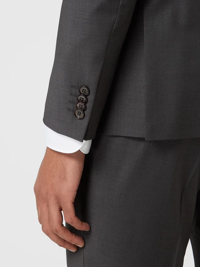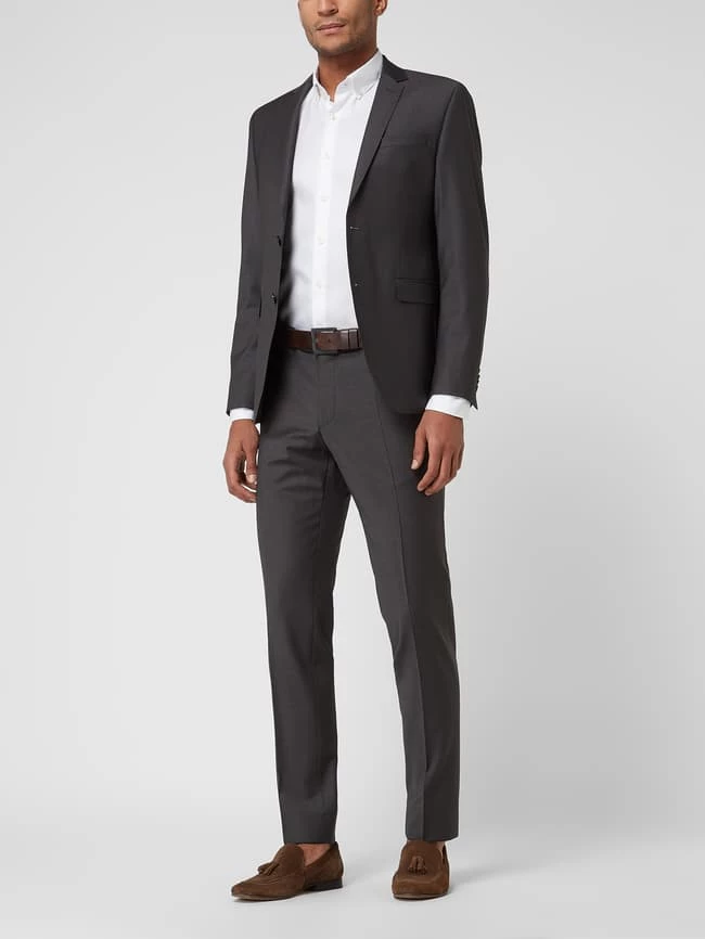 Das 2-Knopf-Sakko von Daniel Hechter ist aus einer Materialmischung mit Schurwoll- und Stretch-Anteil gefertigt. Es zeigt sich im Shape Fit mit steigendem Revers, Kissing Buttons und paspelierten Pattentaschen.