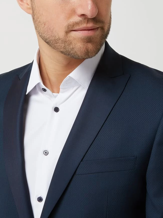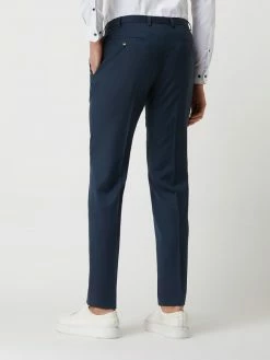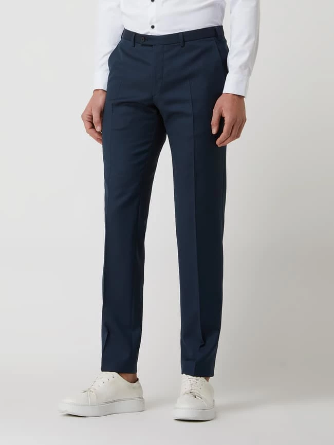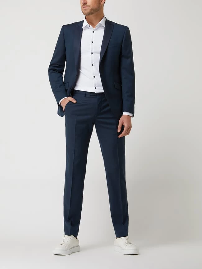 Der Anzug von DIGEL ist aus reiner Schurwolle gefertigt und gerade geschnitten. Das 2-Knopf-Sakko kommt mit steigendem Revers und paspelierten Pattentaschen. Die Hose zeigt sich mit französischen Eingrifftaschen.
