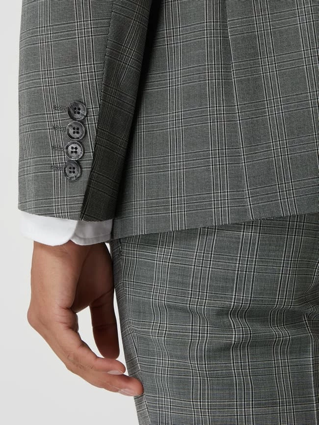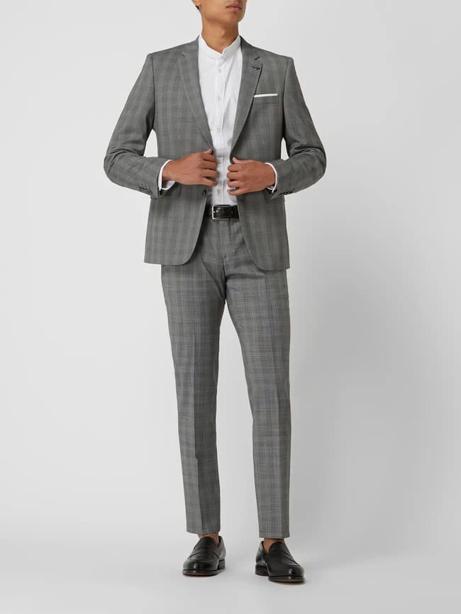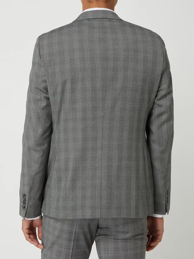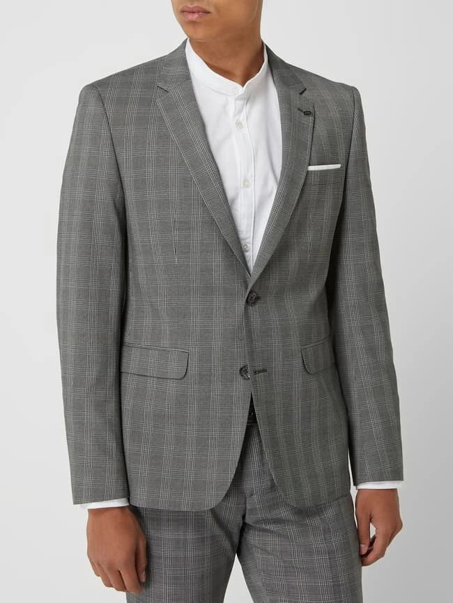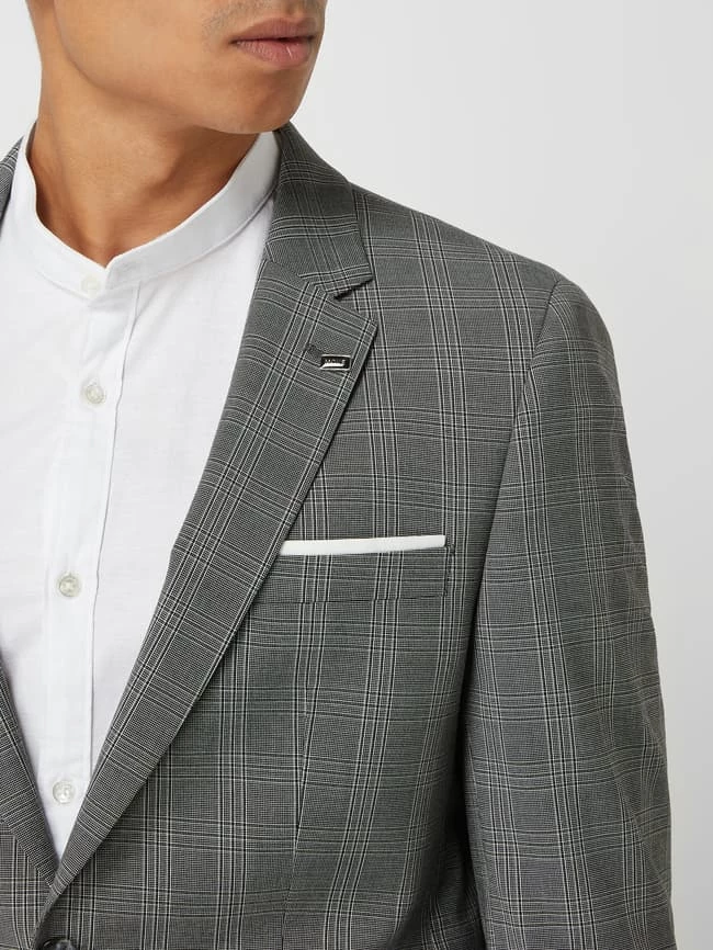 Das Sakko von DIGEL ist aus einer Materialmischung mit Viskose- und Stretch-Anteil gefertigt. Es kommt im Extra Slim Fit mit Karomuster, fallendem Revers und 2-Knopf-Leiste.