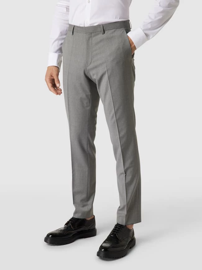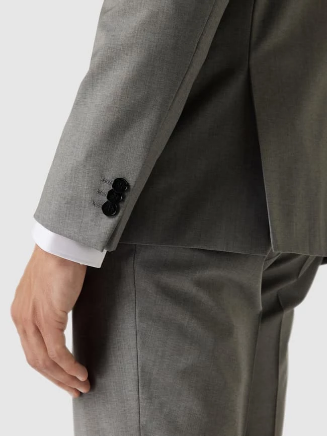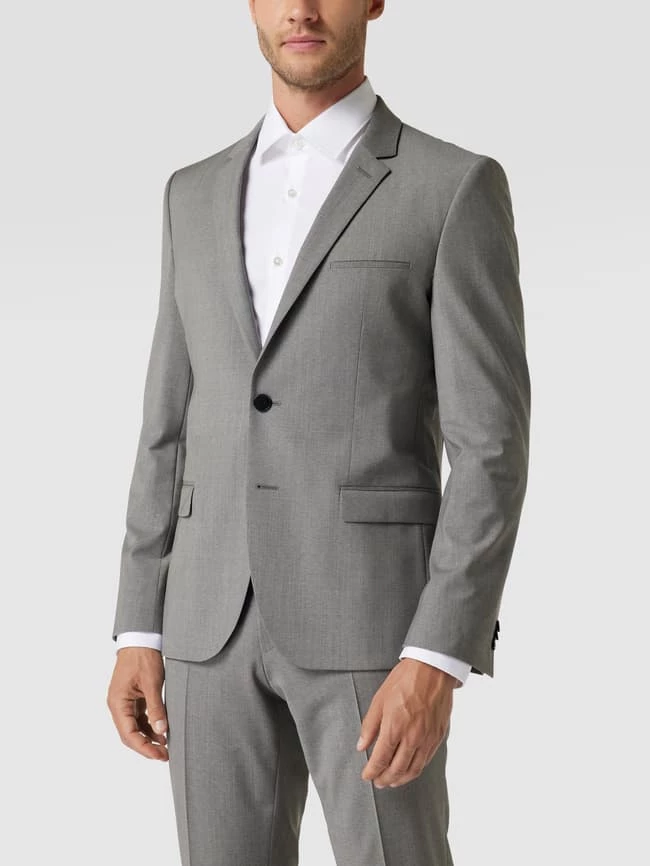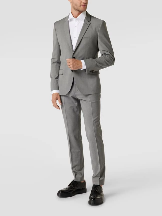 Der Anzug von HUGO ist aus einem Schurwoll-Mix mit Stretch-Anteil gefertigt und im Extra Slim Fit gehalten. Er zeigt sich mit Sakko mit Pattentaschen, Hose mit Bügelfalten und Label-Patch.