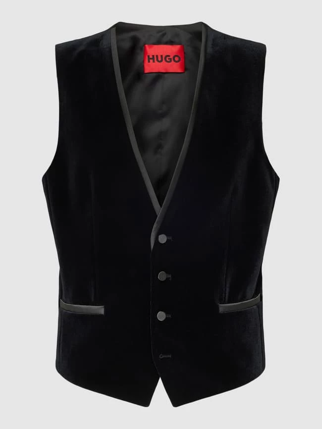 Die Weste von HUGO ist aus einem strapazierfähigen Material-Mix mit Stretch-Anteil gefertigt und gerade geschnitten. Sie zeigt sich in unifarbenem Design mit Knopfleiste sowie Eingrifftaschen.