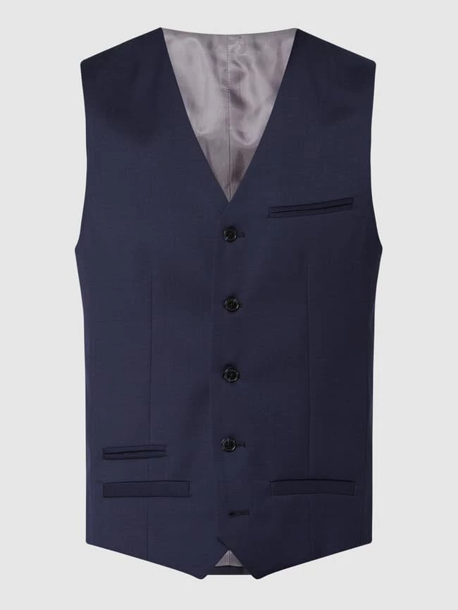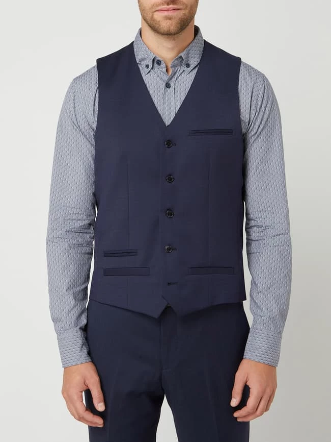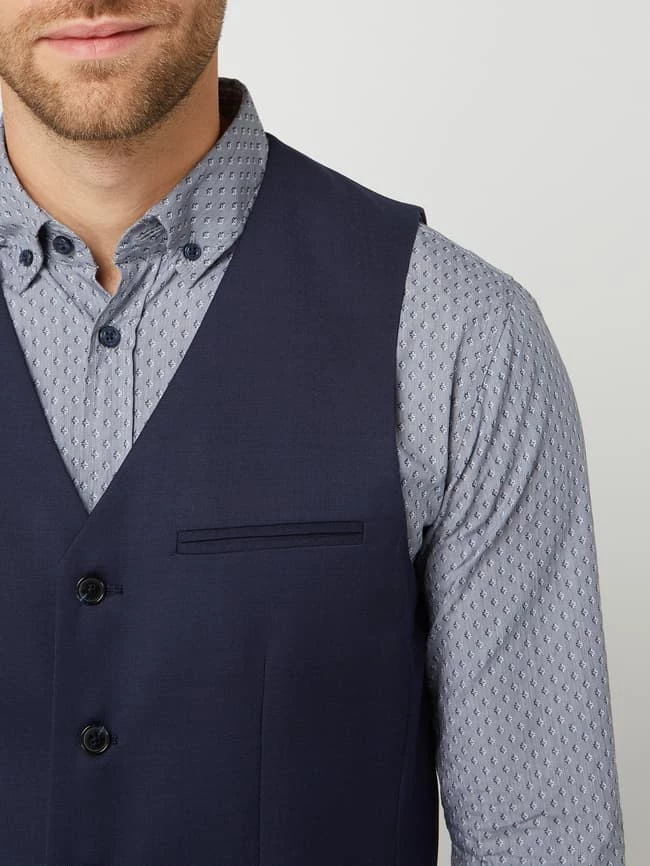Die Weste von Matinique ist aus einer Wollmischung mit Stretch-Anteil gefertigt und schmal geschnitten. Sie kommt mit V-Ausschnitt, Knopfleiste und Paspeltaschen.