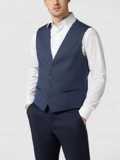 Für besondere Anlässe: die Weste mit feinem Webmuster von MCNEAL. Sie kommt im klassischen Design mit V-Ausschnitt, Knopfleiste und Paspeltaschen. Über den verstellbaren Riegel lässt sich die Passform optimieren.