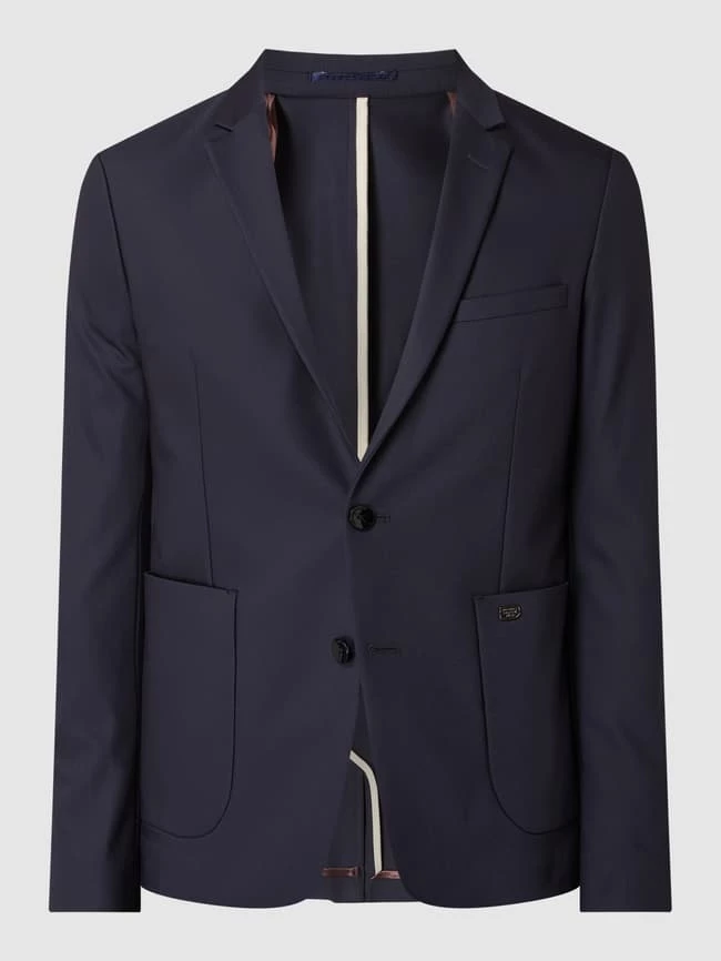 Das Sakko von Mos Mosh ist aus Baumwolle, recyceltem Polyamid und Elasthan gefertigt. Es kommt im Slim Fit mit fallendem Revers, aufgesetzten Taschen und Kissing Buttons.