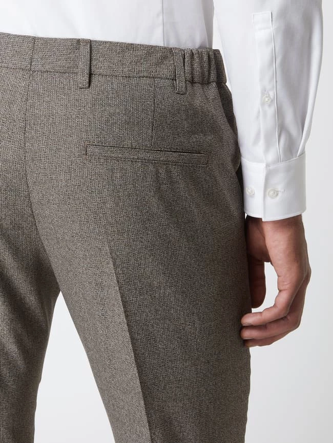 Die Anzughose von Pierre Cardin ist aus einer Materialmischung mit Viskose- und Stretch-Anteil gefertigt. Sie kommt in schmaler Passform mit elastischem Einsatz am Bund, Bügelfalten und französischen Eingrifftaschen.