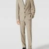 Der Anzug von ROY ROBSON ist aus einer Materialmischung mit Schurwoll- und Stretch-Anteil gefertigt und im Slim Fit gehalten. Das Sakko zeigt sich mit fallendem Revers, paspelierten Pattentaschen und Kissing Buttons. Die Hose kommt mit französischen Eingrifftaschen und geknöpften Leistentaschen.