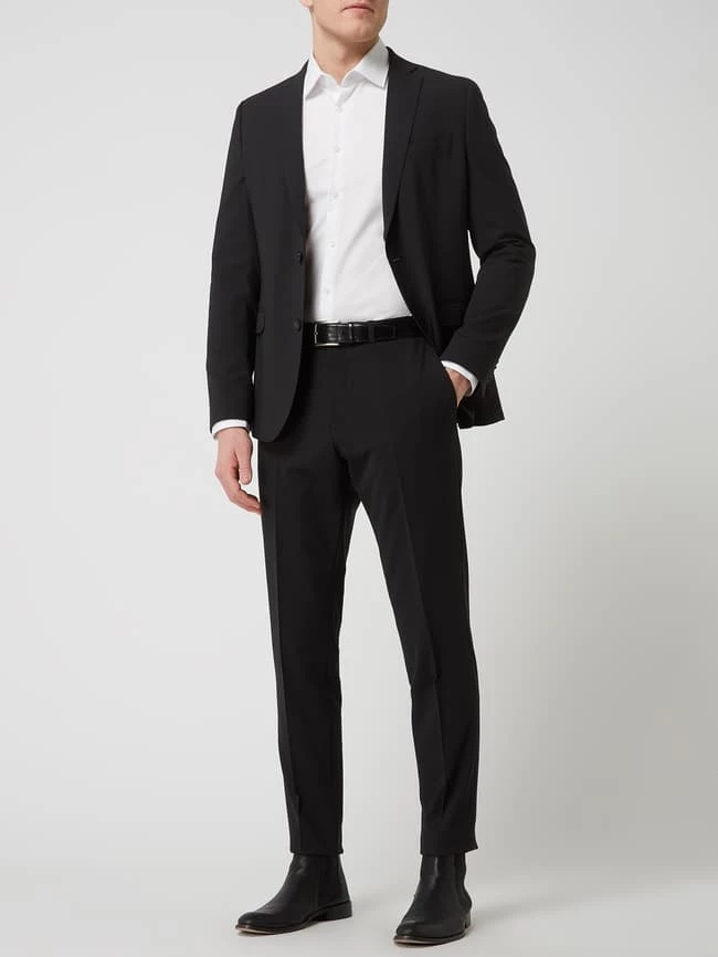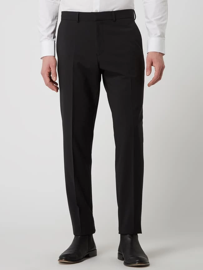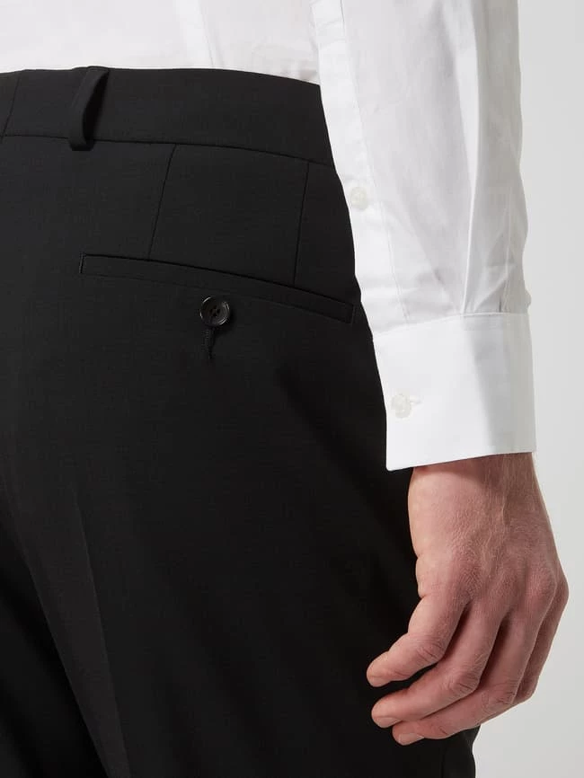 Die Anzughose von s.Oliver BLACK LABEL ist aus einer Materialmischung mit Schurwoll- und Stretch-Anteil gefertigt. Sie kommt mit schmalem Bein, französischen Eingrifftaschen und Bügelfalten. Der ‚Ultimate Suit‘ garantiert hohen Tragekomfort: Das Modell mit ‚Hyper-Stretch‘ weist eine besonders flexible Qualität auf und ist besonders knitterresistent.