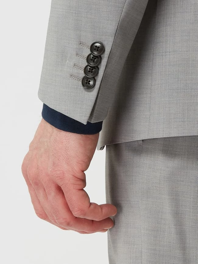 Das Sakko von Tiger of Sweden ist aus einer Materialmischung mit recyceltem Polyester, Woll- und Stretch-Anteil gefertigt. Es kommt im Regular Fit mit 2-Knopf-Leiste, Pattentaschen und Kissing Buttons.
