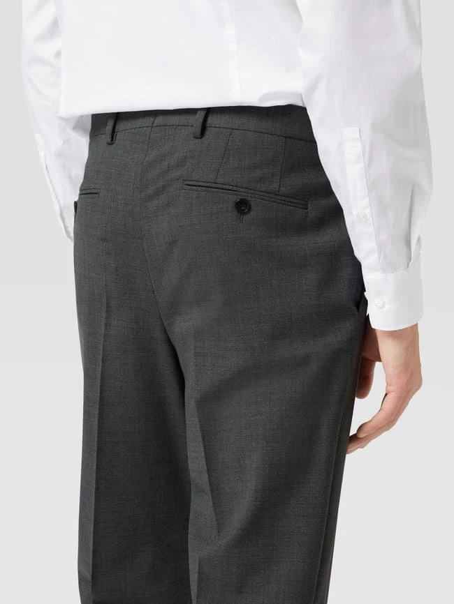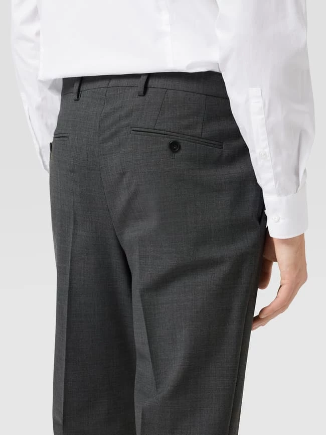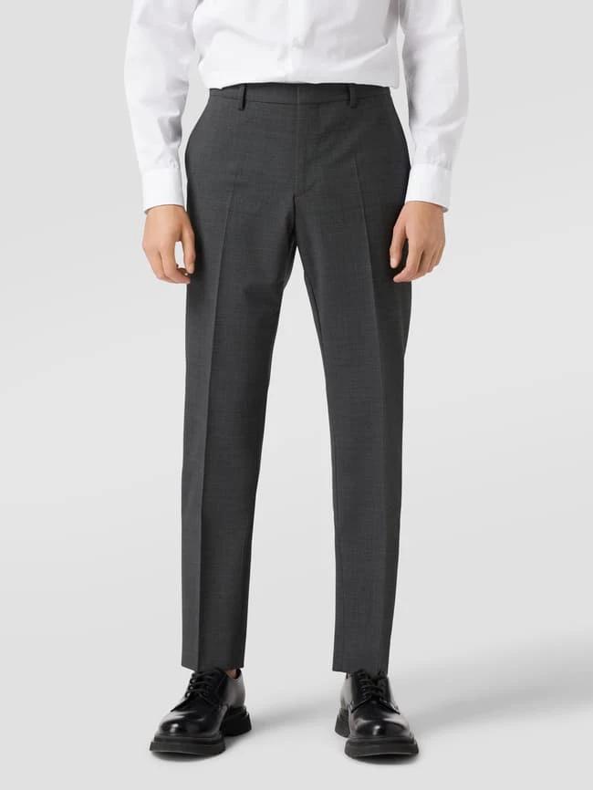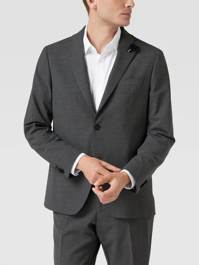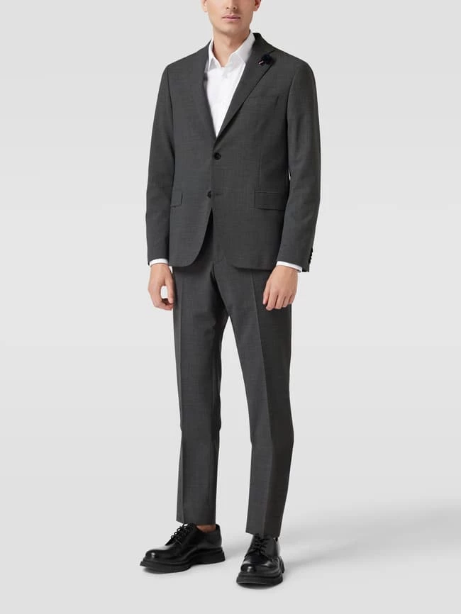 Der Anzug von Tommy Hilfiger ist aus einem Material-Mix mit Woll-Anteil gefertigt und gerade geschnitten. Das Sakko kommt mit 2-Knopfleiste und Anstecknadel. Die Hose zeigt sich mit Haken-, Knopf- und Reißverschluss.