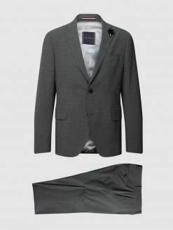 Der Anzug von Tommy Hilfiger ist aus einem Material-Mix mit Woll-Anteil gefertigt und gerade geschnitten. Das Sakko kommt mit 2-Knopfleiste und Anstecknadel. Die Hose zeigt sich mit Haken-, Knopf- und Reißverschluss.